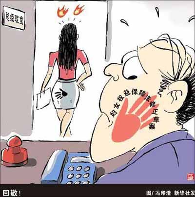 2005 年,《中华人民共和国妇女权益保障法》修正,性骚扰首次入法,规定禁止对妇女实施性骚扰,受害妇女有权向单位和有关机关投诉。而违反规定的,对妇女实施性骚扰或者家庭暴力,构成违反治安管理行为的,受害人可以提请公安机关对违法行为人依法给予行政处罚,也可以依法向人民法院提起民事诉讼。